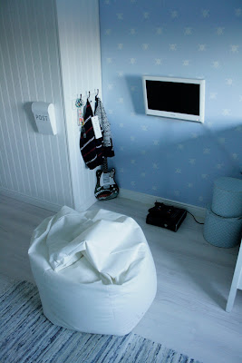Hugo gillar jeanstyger & vi valde tillsammans ut det fina jeanstyget som jag sydde gardinerna av. Den vita sittpuffen är perfekt att ha framför tv:n när det ska spelas X-box eller kollas på film!